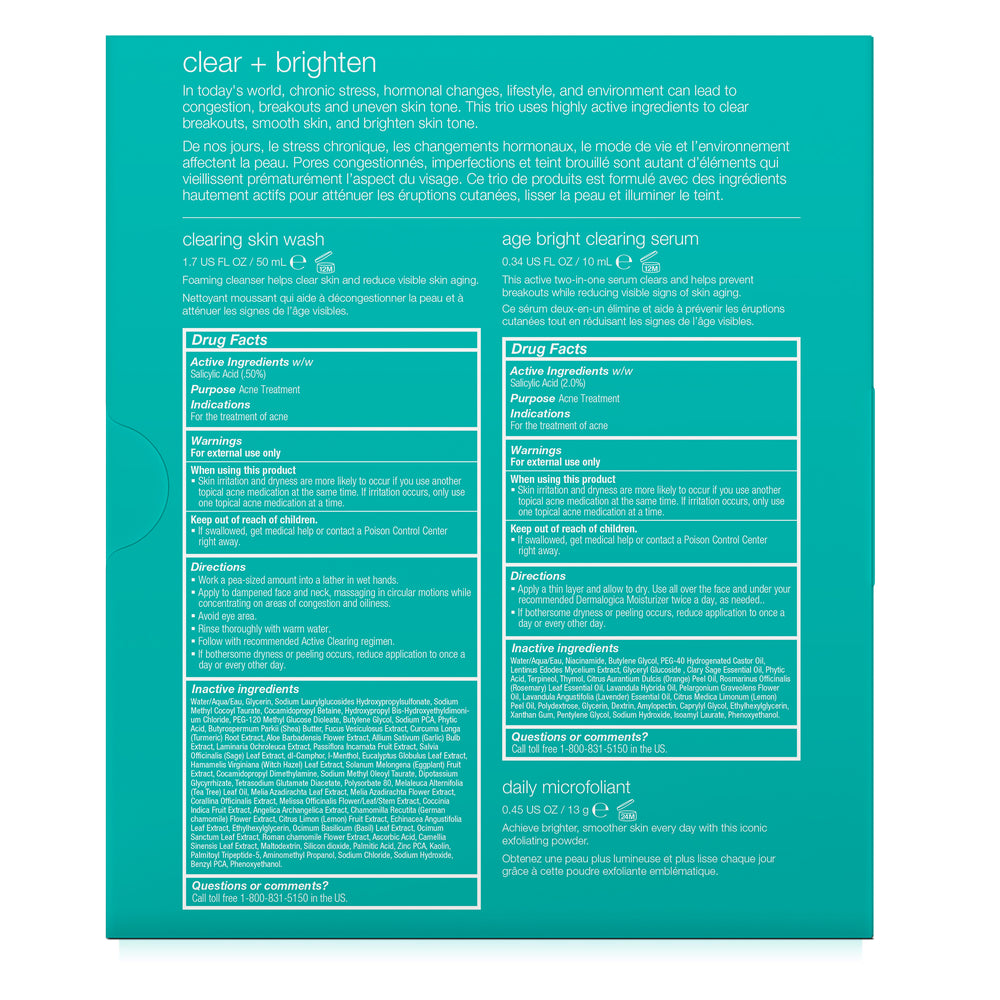In today's world, chronic stress, hormonal changes, lifestyle and environment can lead to congestion, breakouts and uneven skin tone, making skin look older than it really is. This kit contains highly active ingredients to clear breakouts, smooth skin and brighten skin tone. Use morning and night to help maintain consistently clear, healthy skin.